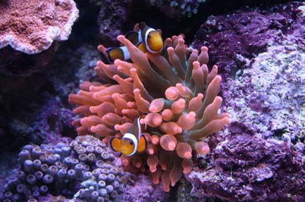 http://img510.imageshack.us/img510/4466/025yb.jpg The second pic is my 2 pink skunk clowns, they live in and around my toadstool coral. http://img210.imageshack.us/img210/516/026gh.jpg The 3rd pic is to show how close they are, so far they don't bother the other pair. http://img535.imageshack.us/img535/5638/027eu.jpg |